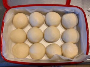 今回はオーブンの発酵機能は使わず、室温の発酵と、冷蔵庫での長時間発酵で。