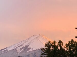 西日で照らされた雪化粧した富士山もとても美しかった。